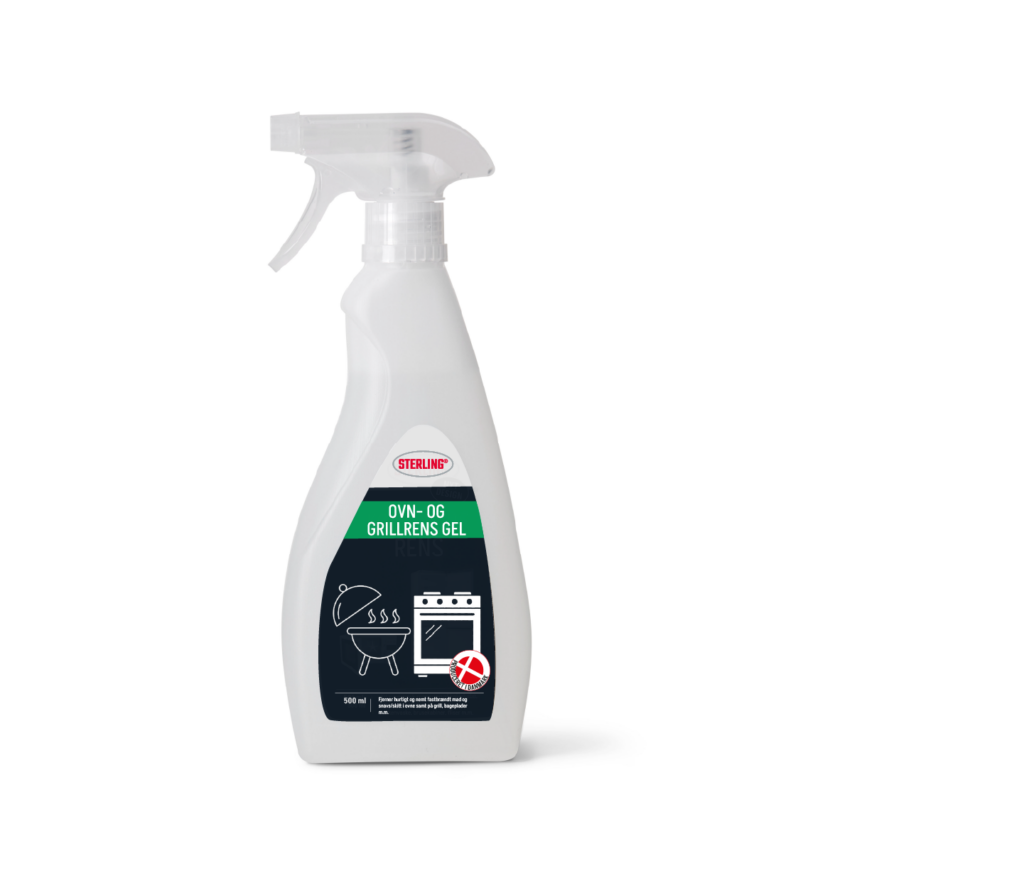 Sterling Ovn- og Grillrens Gel skal anvendes direkte i en kold ovn eller på kold grillrist. Produktet er uden problematiske drivmidler/gasser, vandbaseret og uden faremærkning.