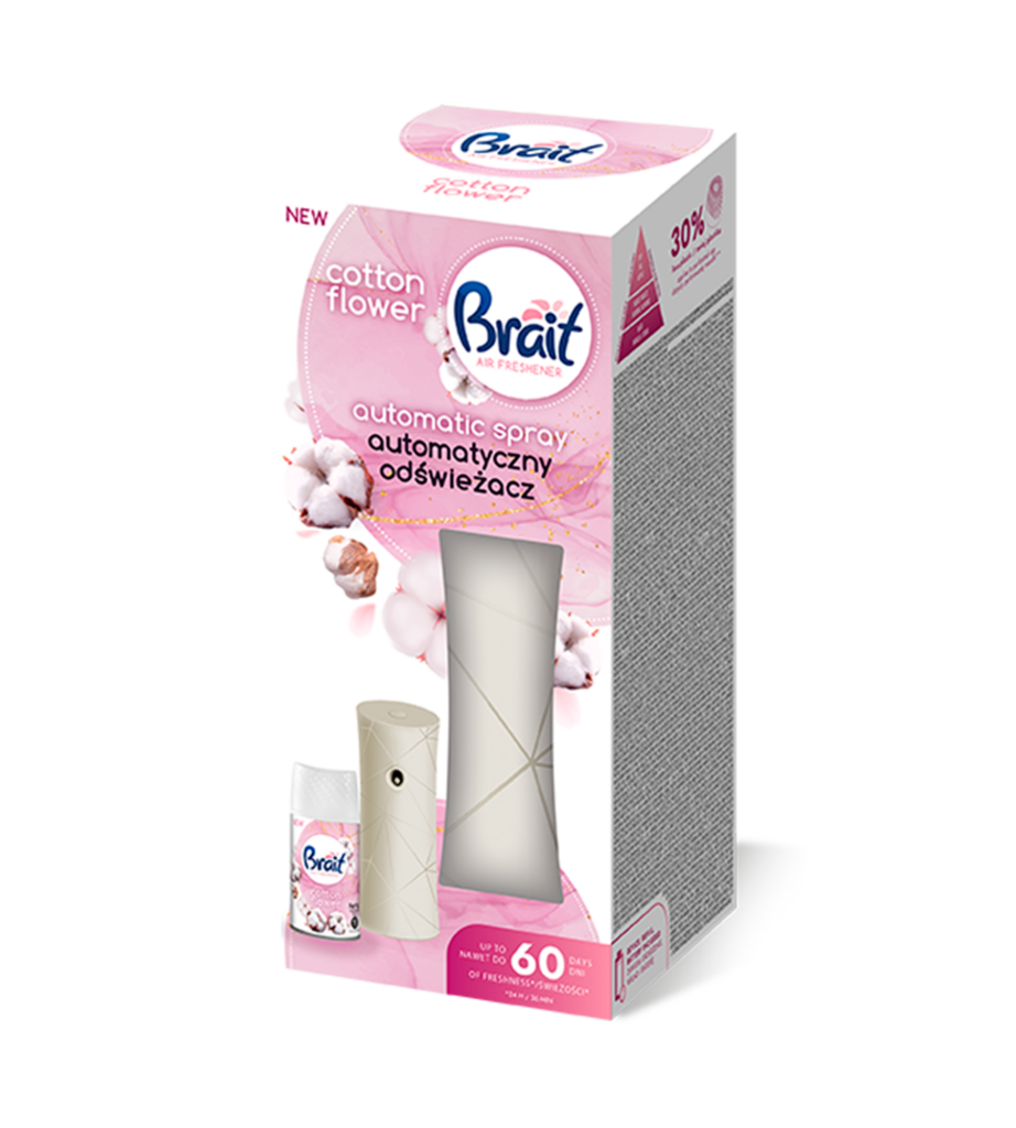 Brait Dispenser Fresh Linen giver en frisk duft i hjemmet. Med det automatiske sprøjt fra Brait Fresh Linen Dispenseren vil duften af renlighed og friskhed være i hjemmet hele tiden.