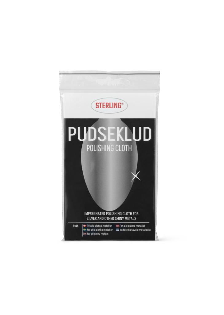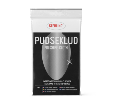 Sterlings Sølvpudseklud, som er lavet i et specielt vævet stof, er imprægneret med Sterlings sølvpudsepulver – et af de fineste og mest skånsomme pudsemidler. Kluden er nem, hurtigt og effektiv at pudse med.