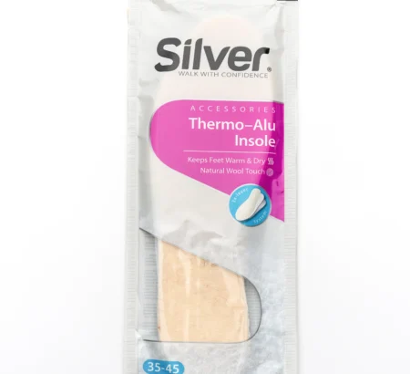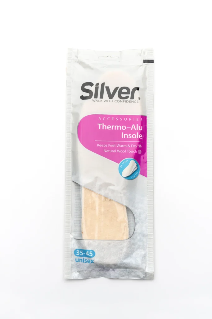 Hold fødderne dejlig varme selv på de koldeste vinterdage med Silver termosål, som består af et isolerende 3-lags indlæg. Det øverste lag i tyk uld sikrer varme og komfort, mens polyethylen-gummilaget giver ekstra stødabsorbering og maksimal komfort under gang og løb. Det nederste lag i aluminium isolerer foden fra fugt og reflekterer varmen tilbage til foden og kroppen, så du holder varmen længere. Indlægget passer til alle lukkede sko, størrelser 33–45, og kan nemt tilskæres for perfekt pasform.